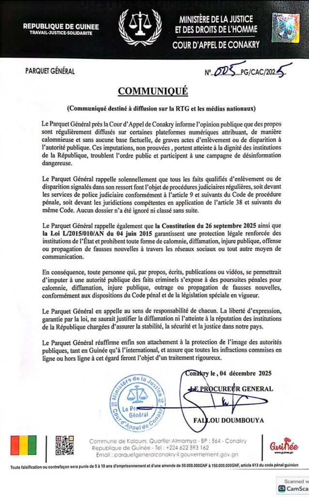 Crise en Guinée : Le FNDC accuse lourdement Mamadi Doumbouya et défie le Procureur Général décembre 5, 2025