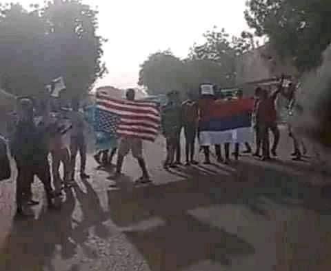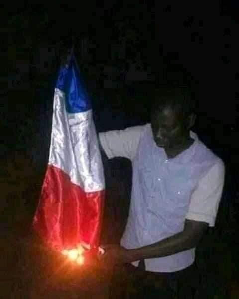 Les manifestants demande le départ de MAHAMAT DEBY au pouvoir et réclame l’intervention des ÉTATS-UNIS D’AMÉRIQUE le drapeau de la France brûlés par les manifestants.