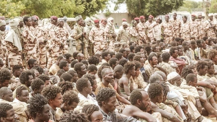 L’armée tchadienne a exposé devant la presse 156 prisonniers rebelles, assis dans la poussière dans une base militaire de N’Djamena ainsi que de nombreux véhicules saisis.
