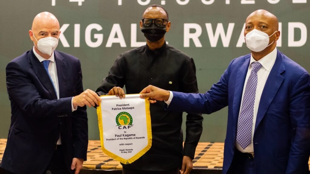 La réunion qui s’est tenue à Kigali samedi a attiré du beau monde. Paul Kagame, le président du Rwanda, et Aurore Mimosa Munyangaju, la ministe des Sports du Rwanda, ont accueillie Gianni Infantino, le président de la Fifa, et Patrice Motsepe, le nouveau président de la CAF, pour un sommet du Comité exécutif de la CAF (COMEX). À cette occasion, Paul Kagame a tenu à « mettre l’accent sur le rapport en le football et le développement en Afrique », indique le communiqué de la CAF.