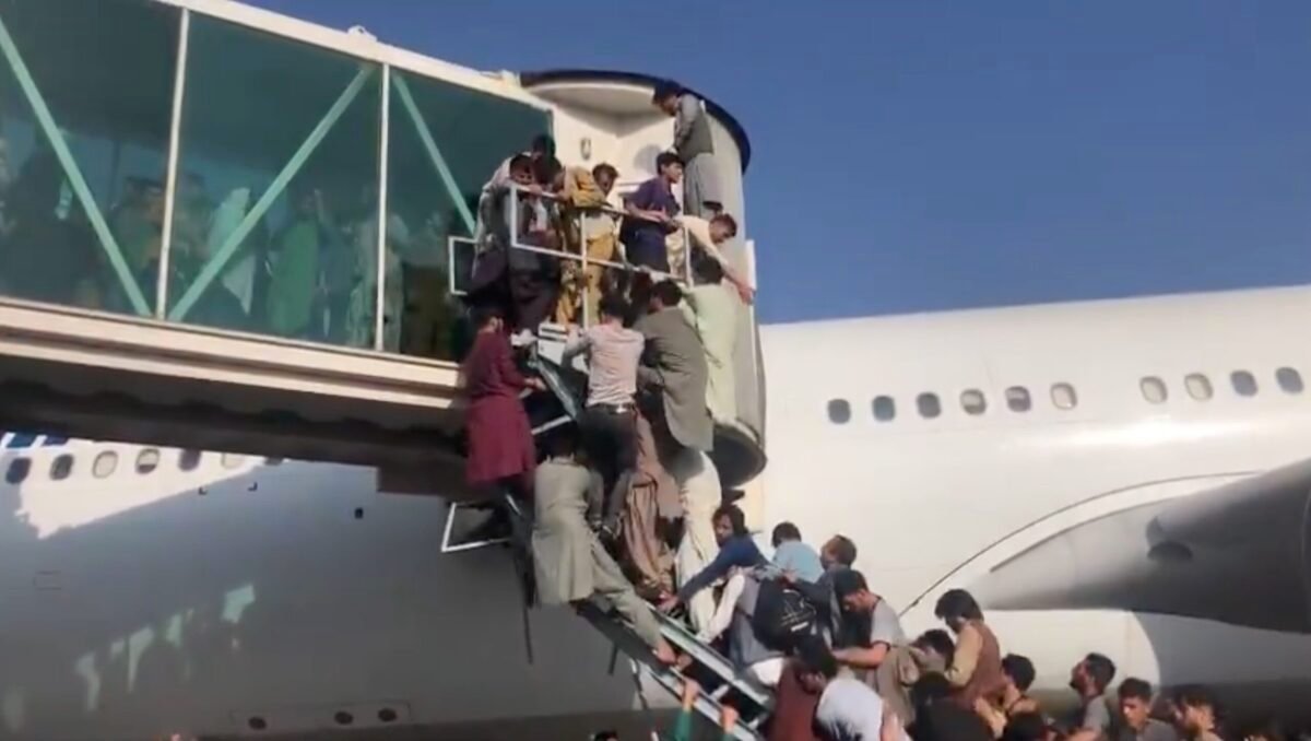 Des voyageurs qui escaladent les rampes d’accès aux avions, d’autres qui courent après les avions sur la piste de décollage : des scènes de chaos ont été filmées à l’aéroport Hamid-Karzaï de Kaboul les 15 et 16 août 2021, alors que les habitants tentent désespérément de quitter la ville et les pays étrangers organisent l’évacuation de leurs citoyens. Dès la nuit du 15 au 16 août, une foule dense s’est rassemblée sur le tarmac.